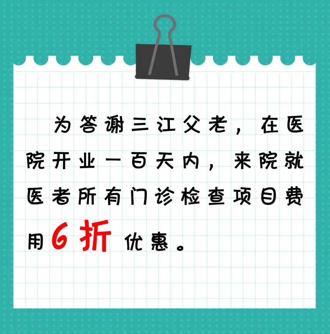 答謝三江父老,門(mén)診檢查項(xiàng)目費(fèi)用6折優(yōu)惠